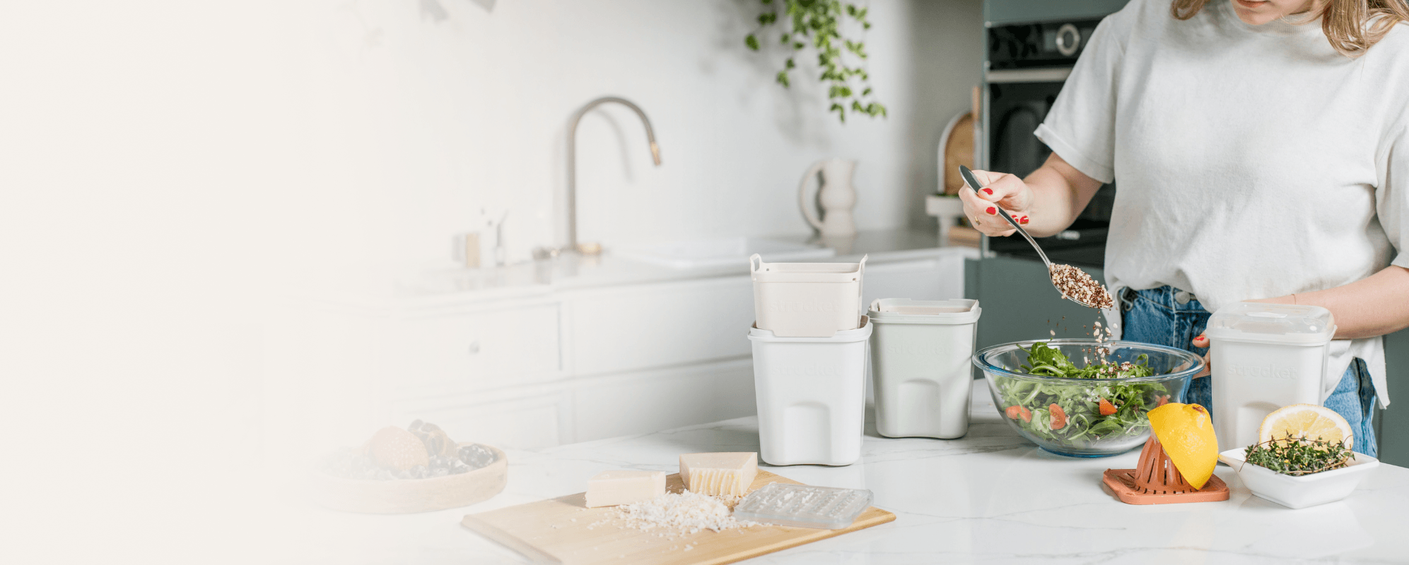 Strucket was born from frustration - soaking and cleaning shouldnβt mean touching dirty water. Founder Kelly Lavery, a busy parent, needed a better way to soak, strain, and drain without the mess. When she couldnβt find a solution, she created one.