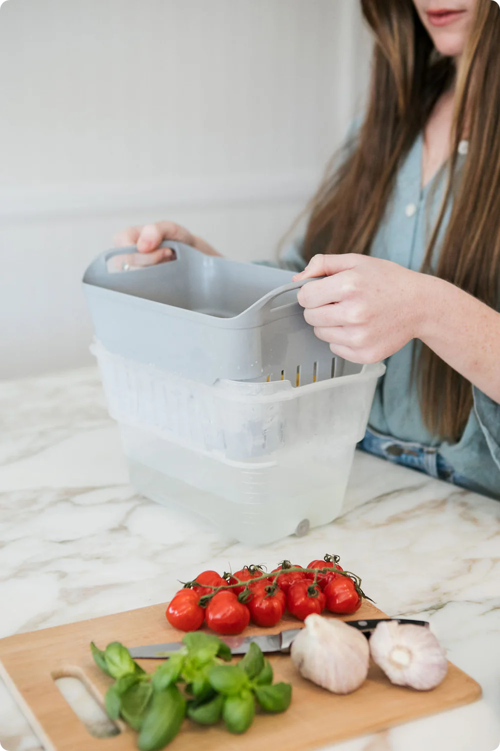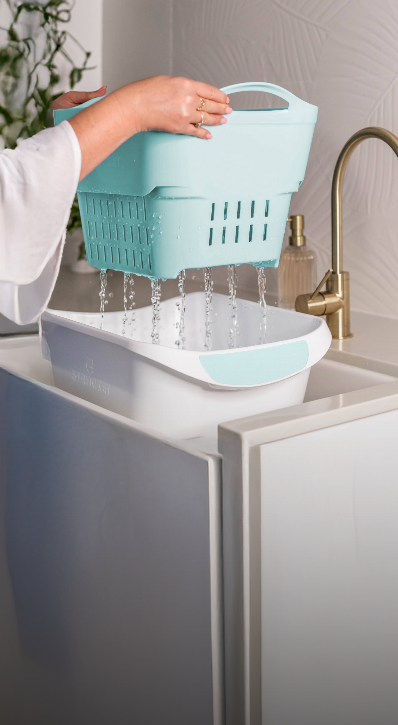 Strucket was born from frustration - soaking and cleaning shouldn’t mean touching dirty water. Founder Kelly Lavery, a busy parent, needed a better way to soak, strain, and drain without the mess. When she couldn’t find a solution, she created one.