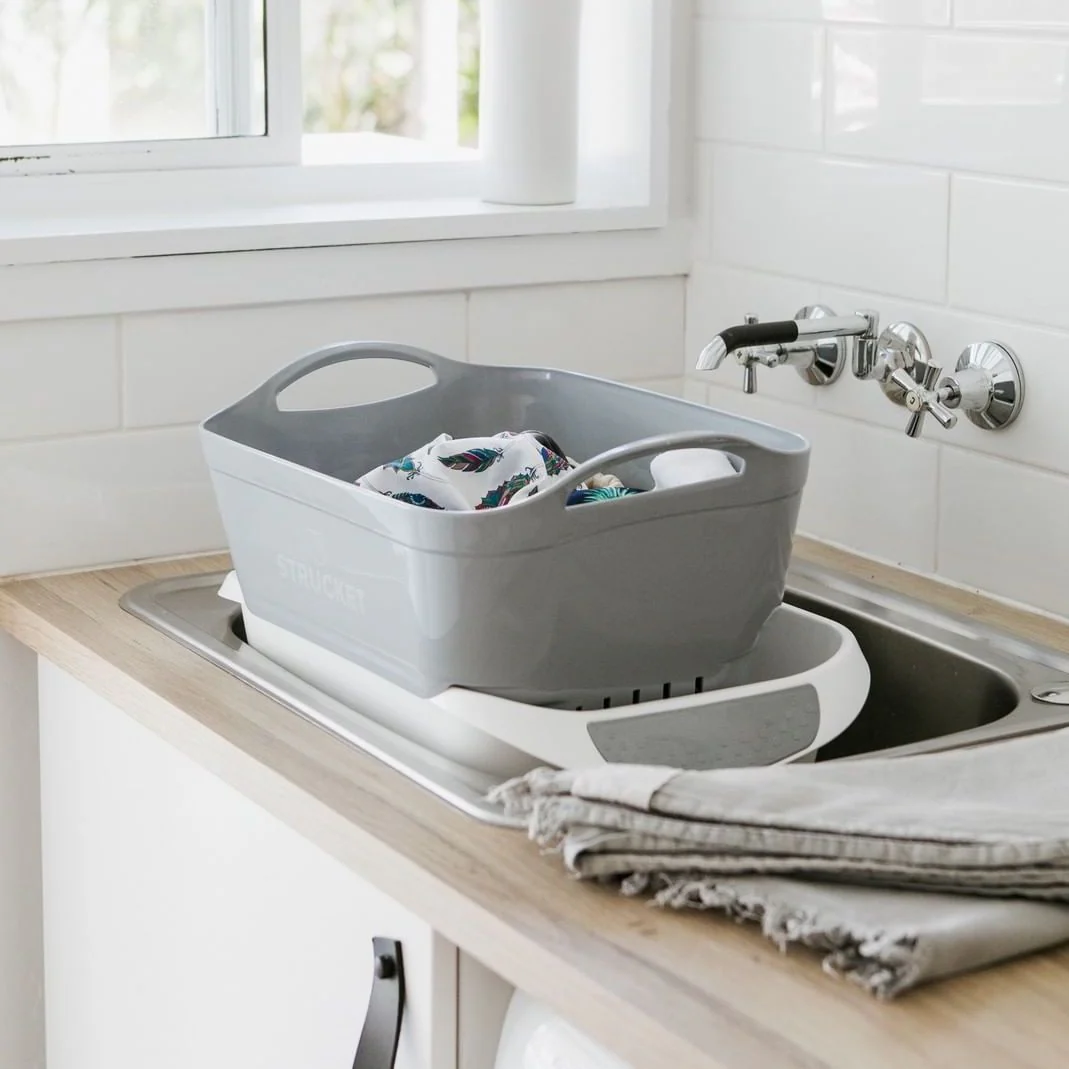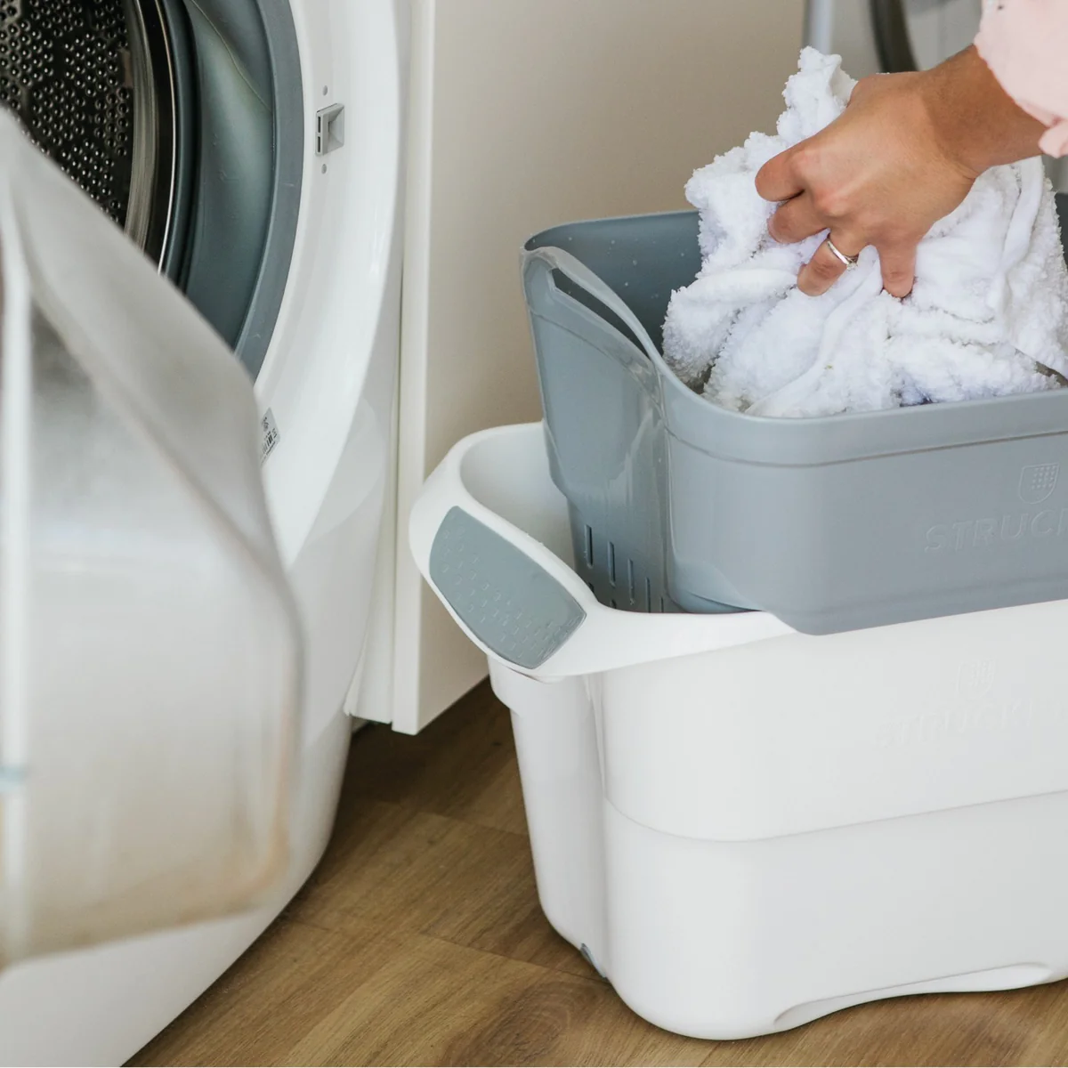 Australia made and engineered, Strucket is both smart and beautiful. It tapers to the bottom and widens at the top, meaning it will still fit into the smallest of laundry sinks. Bonus: it has been built to handle the weight of wet clothes without losing balance.