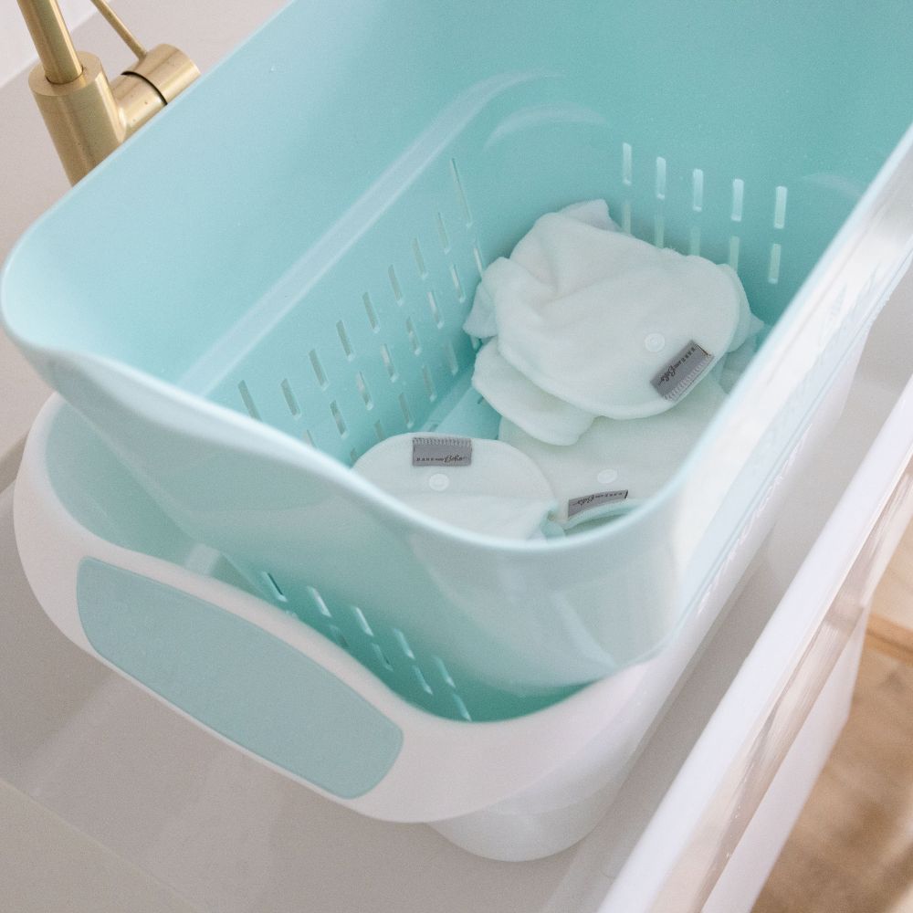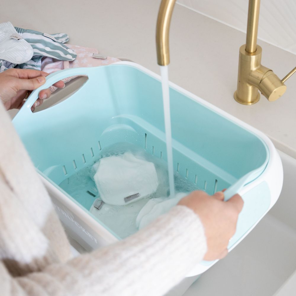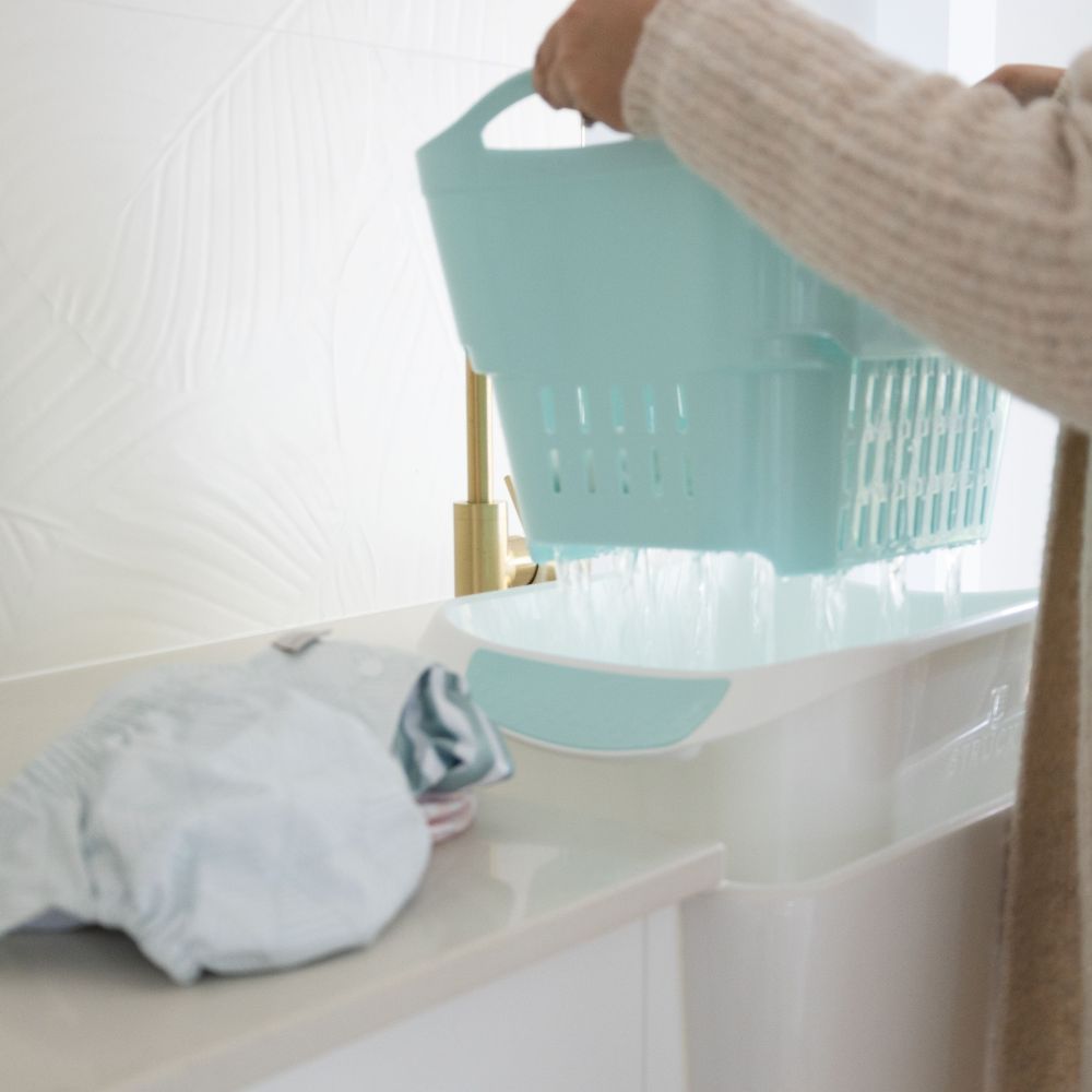 Wash your nappies according to your nappy brand’s instructions, then use the strainer as a handy laundry basket.