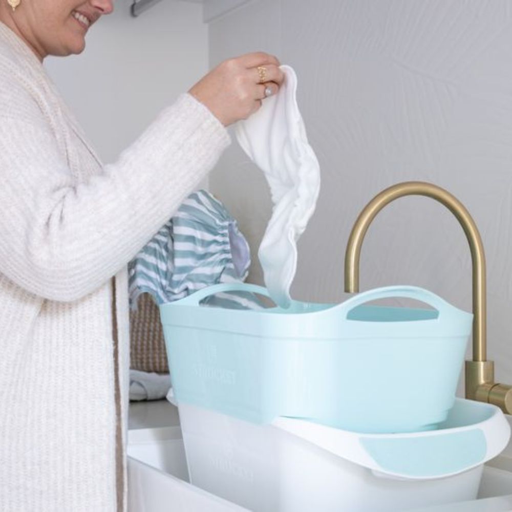 Just pre-rinse, agitate, lift and drain - no more touching dirty water, no more awkward sink rinsing, and no more “I’ll deal with it later” piles sitting in the laundry.